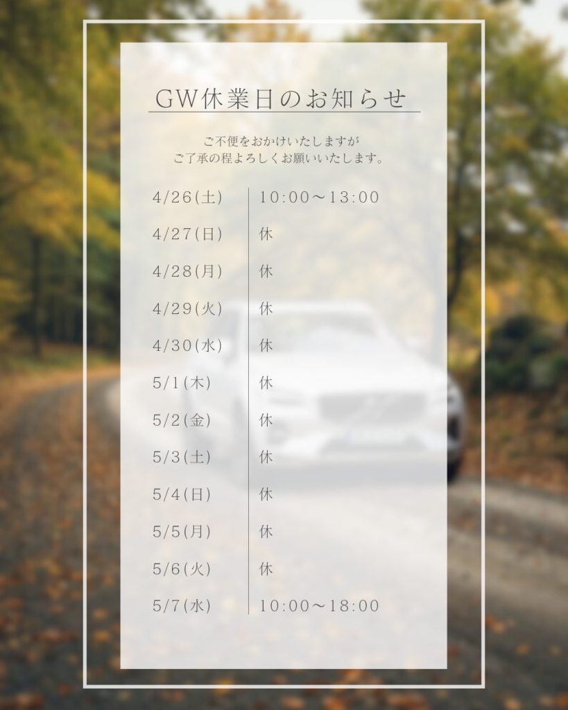 ※4月26日(土)は社内研修の為、13時にて閉店させていただきます。