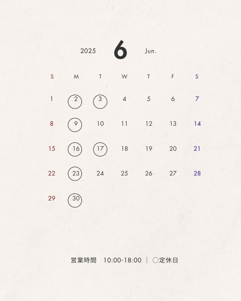 6月の定休日のお知らせです。